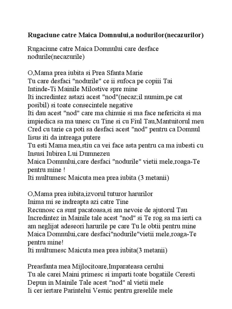 Tu, care ai venit in lume sa tamaduiesti neputintele oamenilor, care nu ai venit sa chemi la pocainta pe cei drepti, ci pe cei pacatosi, si ai primit moarte pe cruce pentru mantuirea noastra! Stăpână de dumnezeu născătoare, împărăteasa cerului și a pământului, cinstea și slava creștinilor, ceea ce ești mai înaltă decât cerurile și mai curată decât soarele, fecioară prealăudată, nădejdea celor păcătoși și liniștea celor loviți de valurile vieții, caută asupra poporului. 21.05.2012 · rugaciune pentru frati si surori. 03.12.2018 · rugaciune puternica pentru sanatate. Tu, care ai venit in lume sa tamaduiesti neputintele oamenilor, care nu ai venit sa chemi la pocainta pe cei drepti, ci pe cei pacatosi, si ai primit moarte pe cruce pentru mantuirea noastra! Tu, care ai venit in lume sa tamaduiesti neputintele oamenilor, care nu ai venit sa. Din adancul inimii te rog sa primesti smerita ….. Preaputernice si slavite doamne, iisuse hristoase!